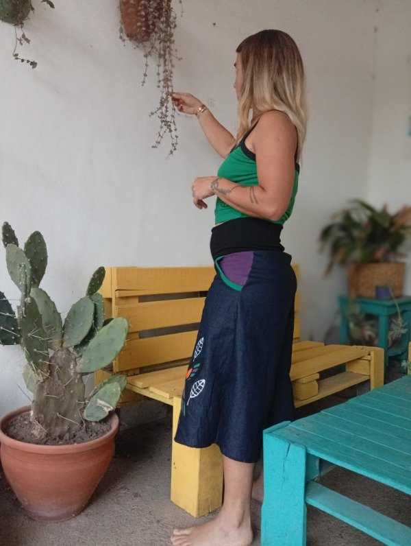 Pantalón Capri de Jean elastizado . También al tener cintura elástica, es genial para pancitas gestantes