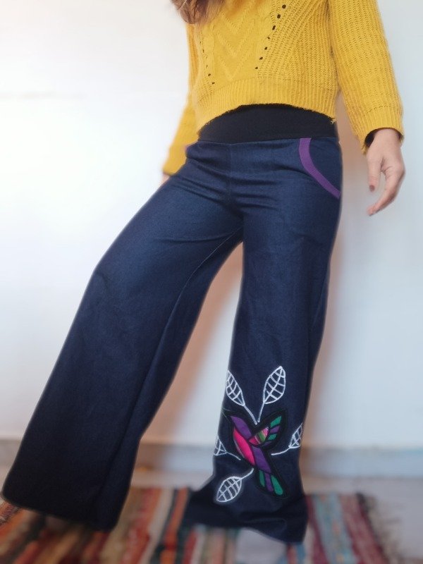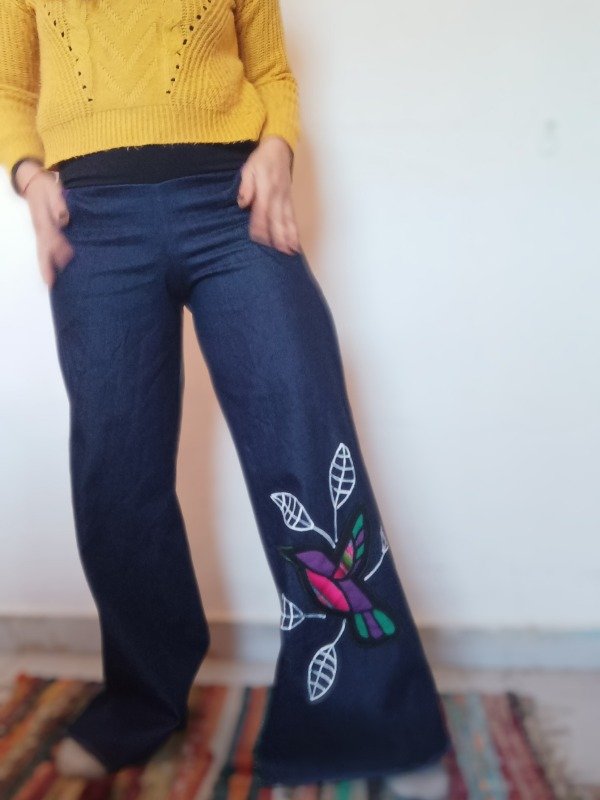 Pantalón palazo de Jean elastizado . También al tener cintura elástica, es genial para pancitas gestantes